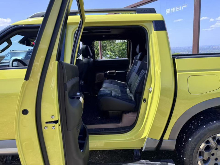 内饰方面,两款车都走了豪华舒享路线,头等舱级的真皮座椅,同级最优12向电动调节,搭配座椅通风、加热功能,插混版高配车型还带有8点背部分区按摩,长途驾驶也能有效缓解疲劳。后排座椅支持7种组合方式和25°-27°-29°三档靠背角度调节,再加上国内首创的970L二排纯平大地板,彻底告别了传统皮卡后排的局促感,载人载物都非常从容。行业首创的后车门90°开启角度,搬运物品上下车也更加方便,细节处尽显实用性。